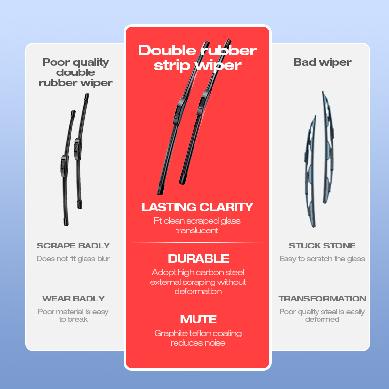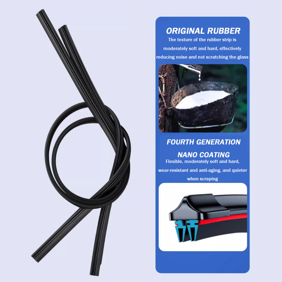 【Cleanly & Quiet】High elastic memory steel sheel, uniform pressure and fit the glass surface to scrape more cleanly, silent lubrication with special fluorosilicone rubber strip.