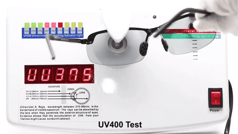 - Photochromic Polarized lenses: The lenses reduce irritating reflections and glare caused by light reflected from surfaces such as water, road, sand or snow. They absorb 100% of UV light and eliminate 99% glare light.